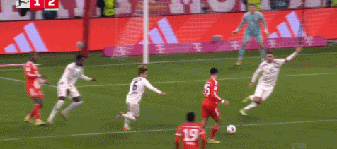 易边再战拜仁继续猛攻,只是他们还没有再进球,后防却再度失守,第66分钟,美因茨右路反击,贝尔60度角处送出精妙的过顶斜吊,李在成反越位成功插上小禁区前沿飞身俯冲头球攻门,皮球飞入球门远端死角,美因茨连追2球2:1反超了比分。第73分钟,拜仁右路快攻,雅克松杀入禁区倒三角小角度似传似射往门前推,皮球擦着远端门柱出了底线。直到第86分钟,拜仁才终于再抓住机会,拜仁左路压上,帕夫洛维奇禁区前沿巧妙直塞,凯恩插上抢点时被波图尔斯基从身后拉倒,主裁吹罚了点球。凯恩亲自操刀主罚稳稳命中,拜仁2:2绝平美因茨。